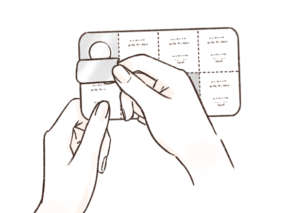 ナルティークは通常の錠剤と比べて柔らかいため、裏面のシートを完全にはがしてから取り出してください。